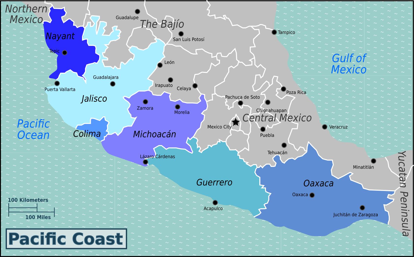 Мексико тихоокеанско крайбрежие карта